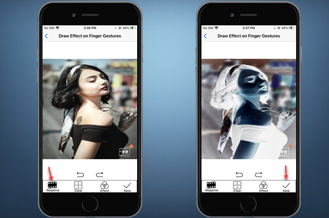 The last efficient mobile app for iPhone that you can use to invert colors on pictures is Negative Photo Maker. Moreover, this app is composed of a user-friendly interface that even beginners can use very quickly. Aside from negative color, it also offers different effects that you can use to enhance photos. In addition, you can also draw using your finger gestures to make the photos more interesting. Check the step-by-step procedure below on how to invert colors on a picture with your iPhone.