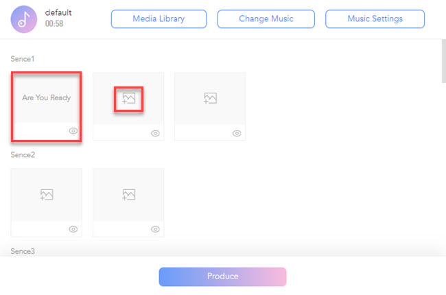 - From the custom movie intro maker, click the “Text” box to customize the text. Then, click the “Gallery” icon to upload the photos you want to include in the intro video.