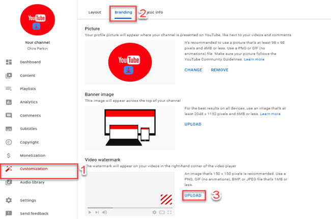 In this part of this article, we will show the procedures on how to do it using the YouTube Studio. However, there are some things that you need to know before adding a subscribe button to your video. First, the minimum size requirement of the image is 150 x 150 with a 1:1 ratio. Second, the file size of the image should be less than 1MB. Third, the PNG image format is the recommended file format to have a better watermark quality on the video. So, if you’re wondering how to add subscribe button on YouTube video, you can follow the steps written below.