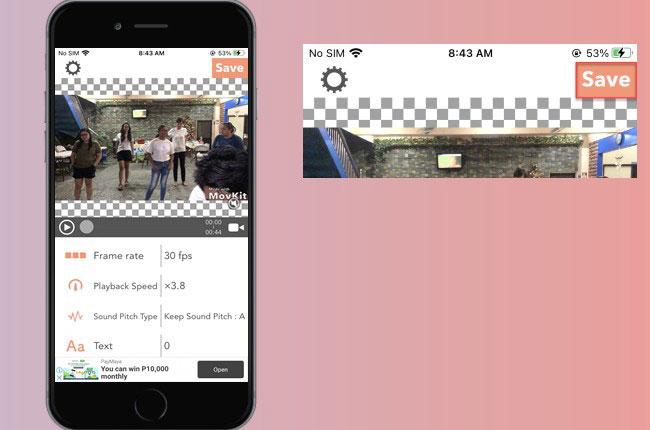 Next, we have Movkit. This is another video editing app that enables you to edit voice in video in just a few simple taps. Not to mention, it has an easy-to-use interface that lets first-time users edit videos without experiencing any hassle. Wherein you adjust frame rate, playback speed, sound pitch, and volume quickly. Despite these, there are ads below that lead you to Safari every time you tap it.