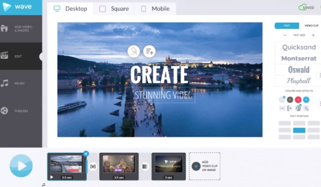 An online vertical video editor which can be used on different platforms is Wave.video. This tool works with Windows PC, Mac, Android and iOS. Furthermore, it supports all formats which you can use on your Instagram stories, Facebook cover and square videos etc. Users can upload videos, images, and music easily with its drag-and-drop functions. Also, users can share video to other social media sites like Facebook, YouTube, Twitter, Google Drive, Vimeo, Dropbox, Wistia, and HubSpot. See the guide listed below for how this program works.